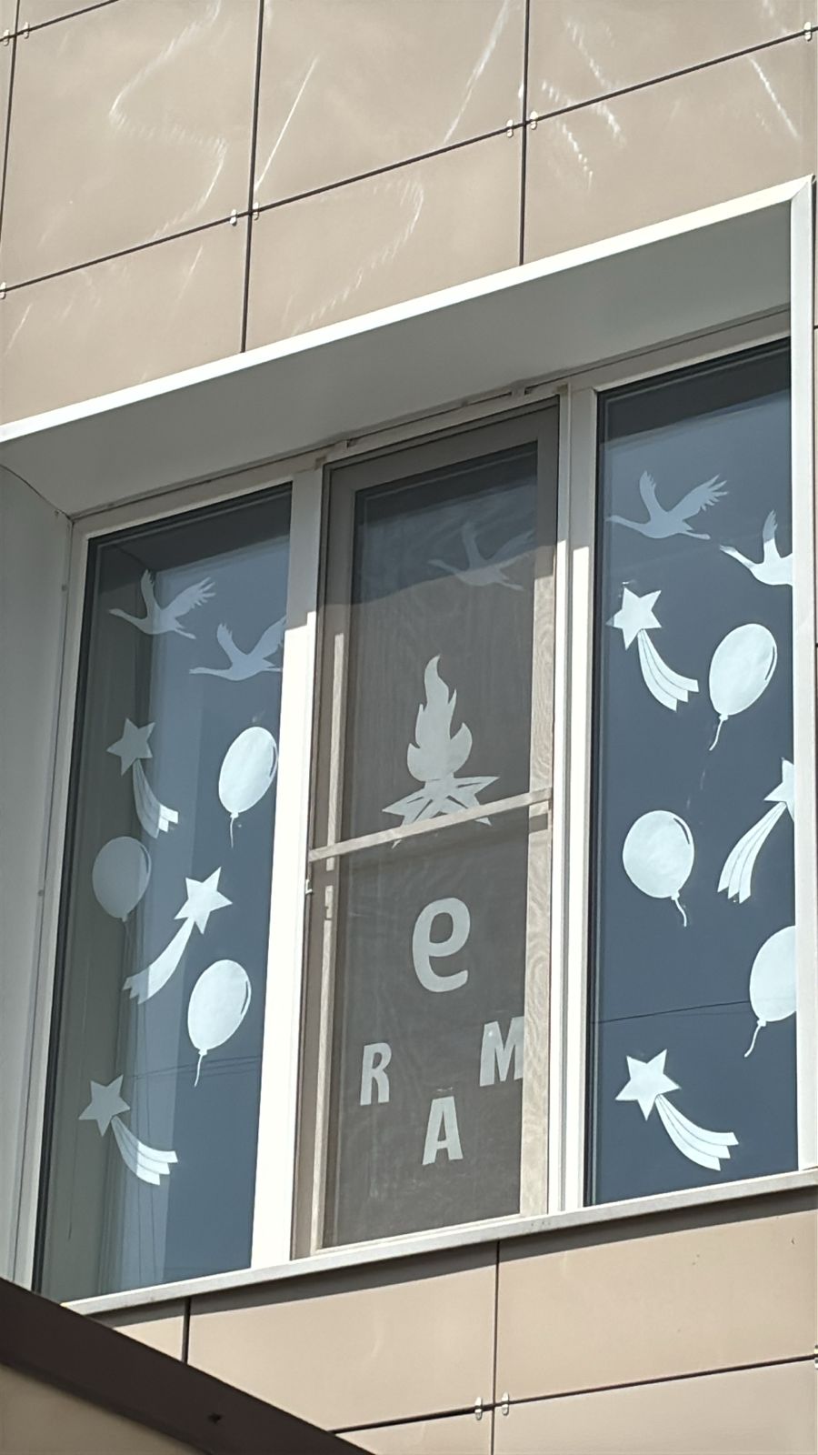 Вооружившись красками, кистями и трафаретами, сотрудники поликлиники украсили окна символами Победы: георгиевскими лентами, красными звездами, голубями мира и цветами.