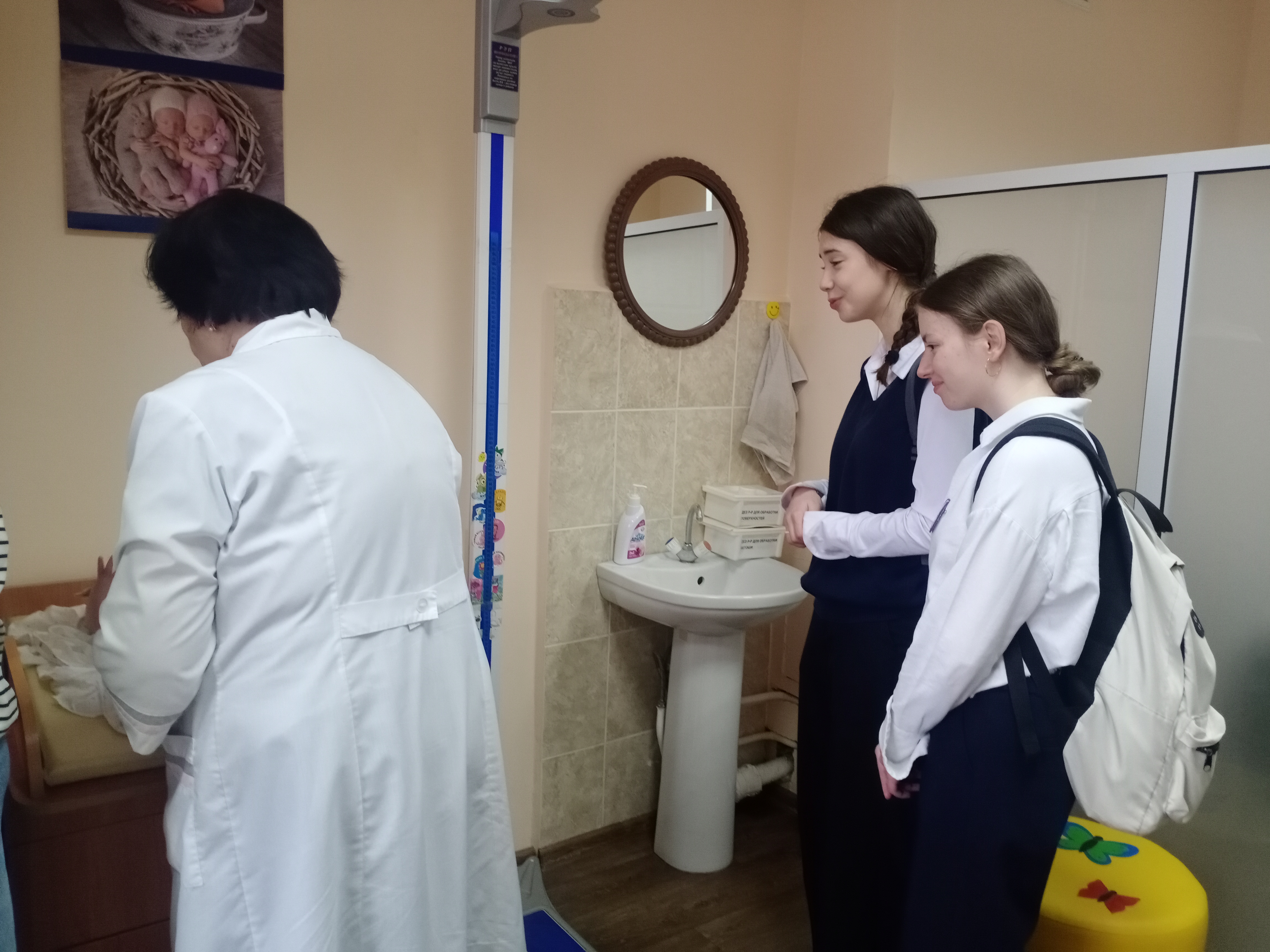 Присутствовали на приеме у врача педиатра, познакомились с оценкой физического развития ребенка, побывали в кабинете здорового ребенка, где родителям даются рекомендации по питанию, режиму дня, закаливанию, проводится оценка психомоторного развития ребенка. Познакомились с работой врачей специалистов, в клинико-диагностической лаборатории в микроскоп впервые увидели клетки крови.