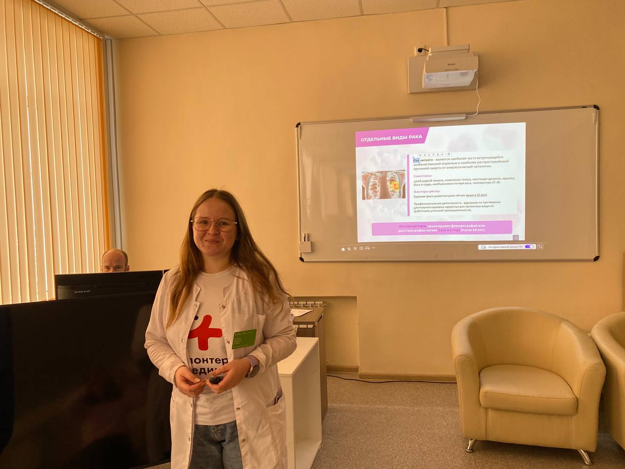 Они познакомили студентов с понятием онкологии, рассказали о ее факторах риска и различных видах заболеваний, а также предоставили информацию о мероприятиях по профилактике онкологических заболеваний.